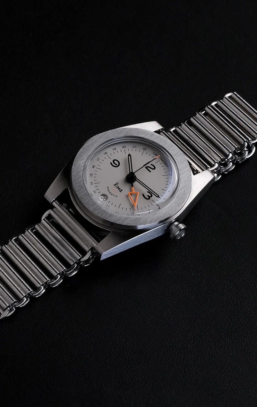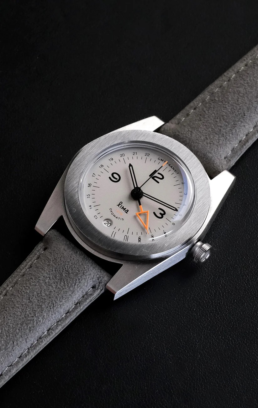Introducing the Lima GMT Transit, the first-ever GMT collection from Lima, an independent design-driven watch studio. This timepiece marks a new chapter in Lima’s pursuit of refined functionality and thoughtful form. The case features a unique construction where the bezel rests on a gently curved mid-case—departing from the conventional flat design found in most watches. This results in an elegant, continuous silhouette that enhances simplicity and gives the watch a natural, flowing presence on the wrist.