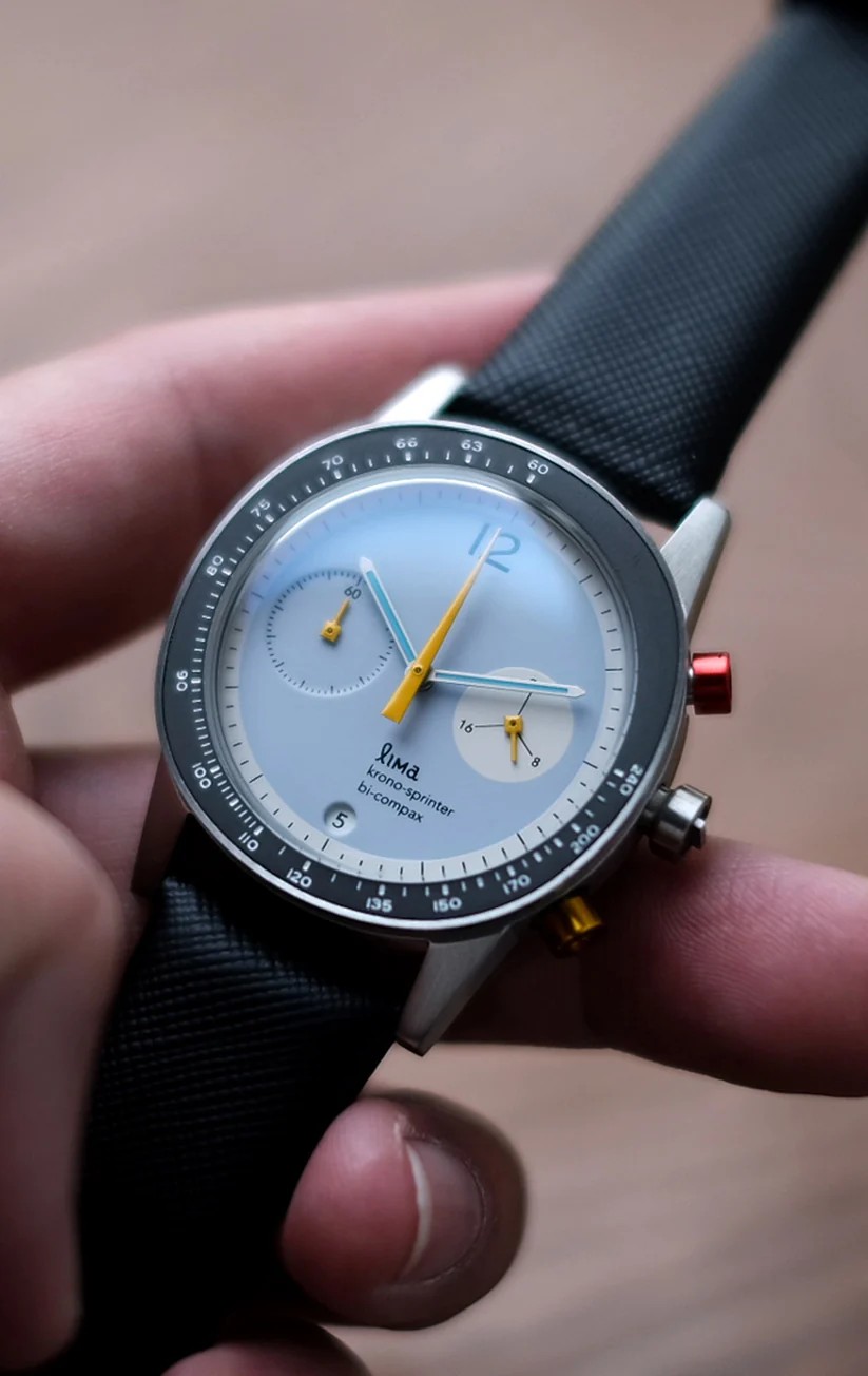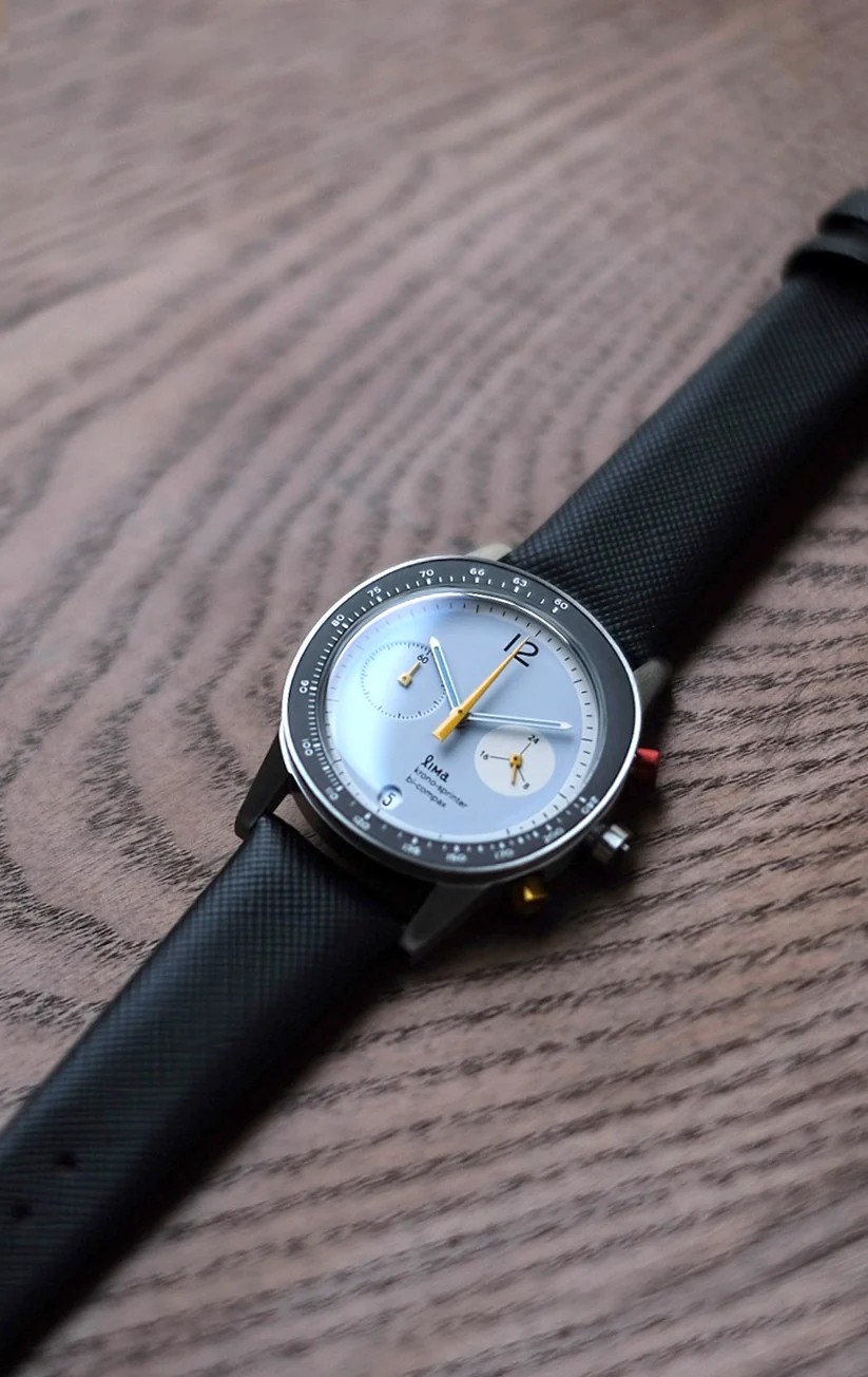 Lima Kronosprinter. Inspired by the simple design of Bauhaus and contemporary sophistication of Dieter Rams design style, comes a chronograph watch that has both modern and vintage flair. With its unique squarish circle in which we call Squircle, Lima Kronosprinter is for sure a one unique timepiece that stands out among the rest.