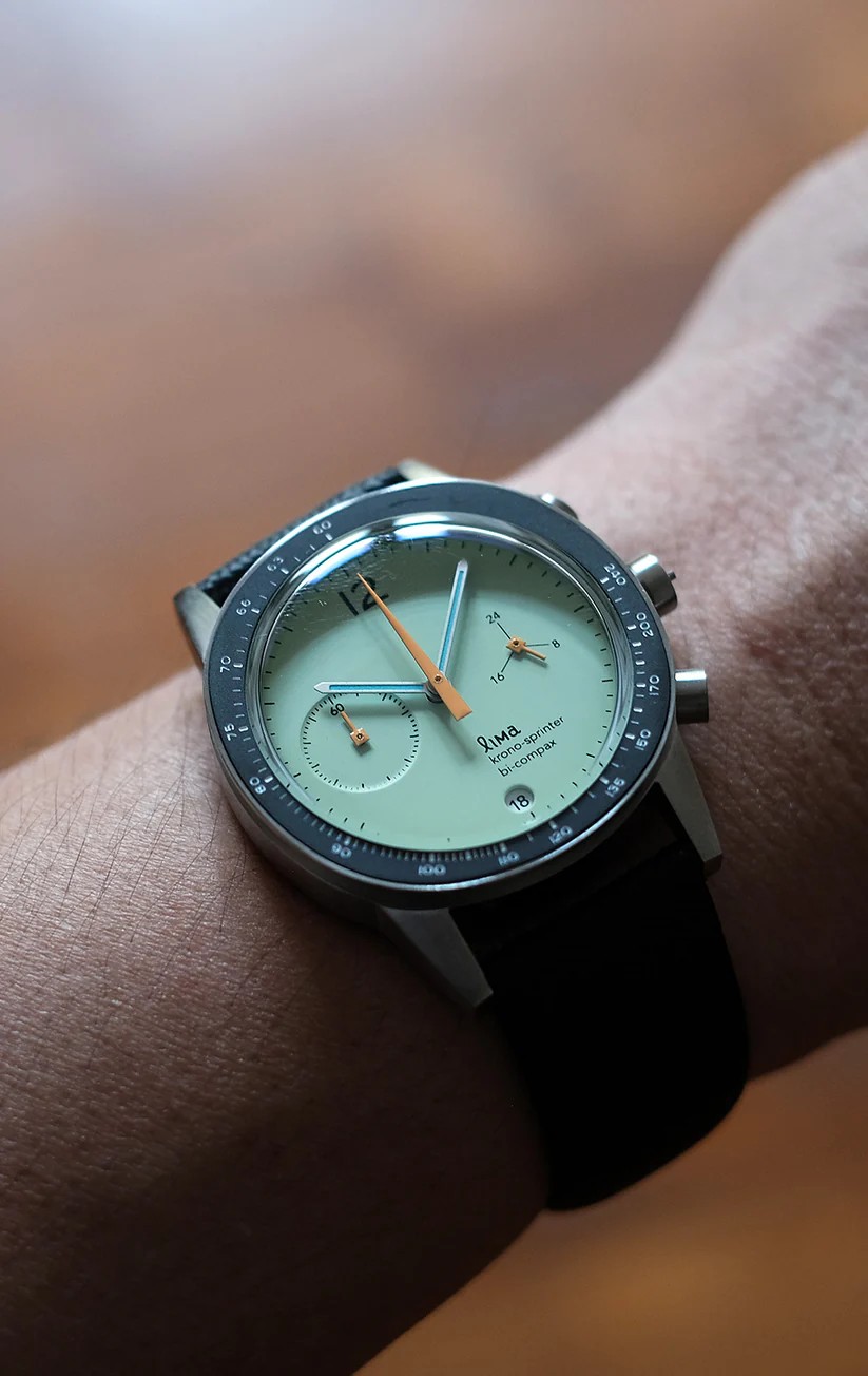 Lima Kronosprinter. Inspired by the simple design of Bauhaus and contemporary sophistication of Dieter Rams design style, comes a chronograph watch that has both modern and vintage flair. With its unique squarish circle in which we call Squircle, Lima Kronosprinter is for sure a one unique timepiece that stands out among the rest.