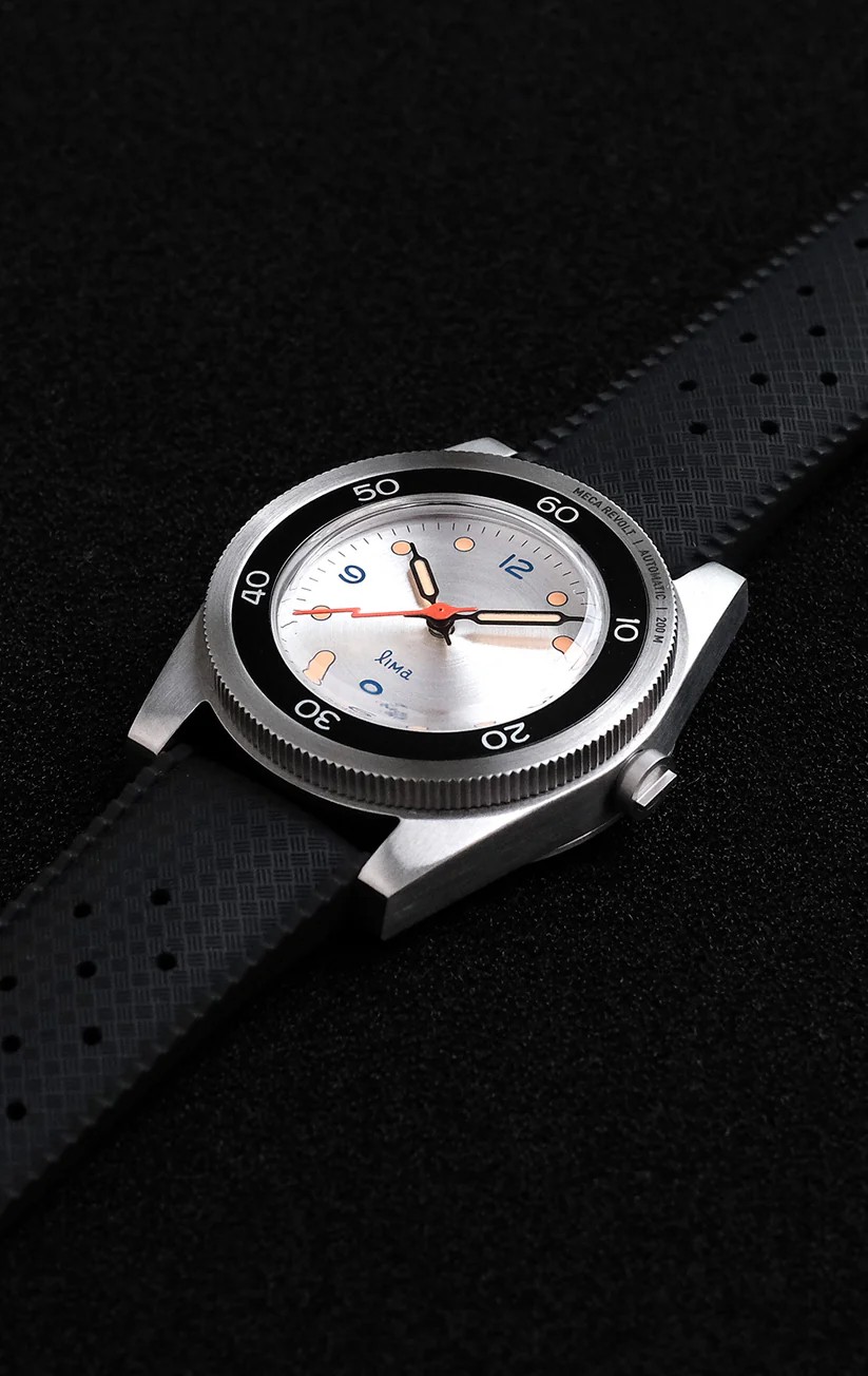 A New Meca Revolt with a new silver Bezel plus the regular minute black bezel. Also a new silver radial brushed dial, with orange lume and INDONESIA writing on the 6 o'clock position.